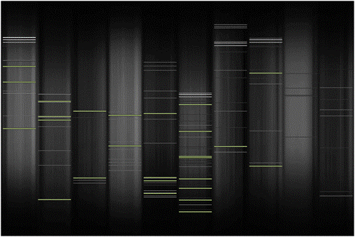 In the process of writing the paper, I wanted to look up some information on the actual chemical structure of DNA, so I turned to the trusty Internet. After a few minutes searching online for information on DNA, I stumbled across this website, which renders webpages using a genetic representation, which struck me as vaguely cool. Specifically, it uses the HTML code of to create a DNA fingerprint for a website. For example, below is the DNA of komplexify; click on it for its interpretation.