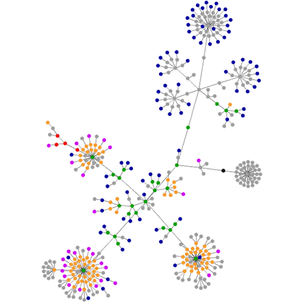 Of course, this has nothing to do with the paper (other than using genetics as a metaphor for something else), but it got me to thinking about other ways to render a website graphically. After a few more minutes searching online, I found this website, which renders websites as connected graphs. For example, below is the graph-theoretical structure of komplexify; click on it for its interpretation.