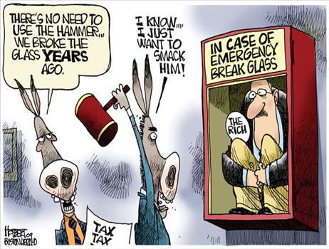 How shall we pay for all this new governmental bureaucracy staffed by incompetent buffoons? We will raise taxes on the super wealthy, whereby “super wealthy” we mean “decadent capitalist pigs”, and by “raise taxes” we mean “simply seize all their funds redistribute it to the rabble in an orgy of socialism.”