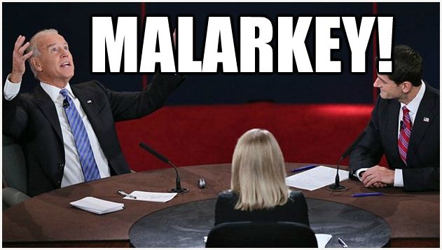 Joe Biden: [ Showcases freakishly white toothy grin and 1″ American flag lapel pin ] Thank you. Ah, shucks, it’s nice to see all you little fellers and gals out there in tee-vee-land.